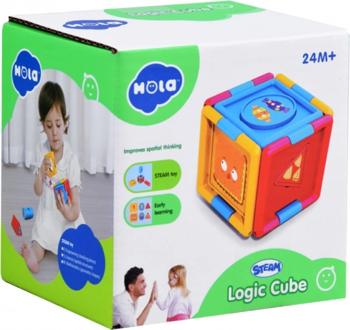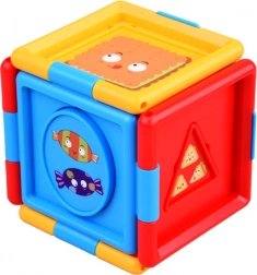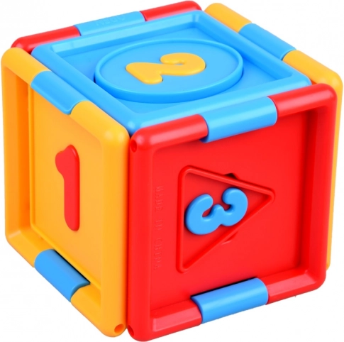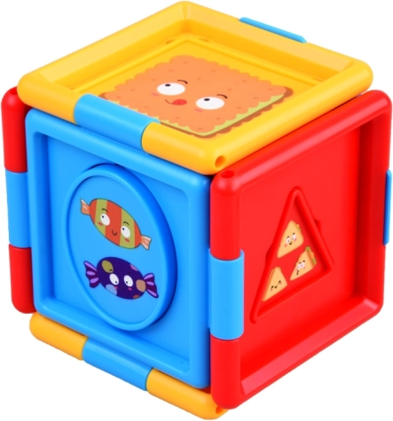 De kubus is versierd met kleurrijke afbeeldingen en levendige kleuren, wat de aantrekkingskracht vergroot en de nieuwsgierigheid van kinderen stimuleert. Hij is gemaakt van plastic, wat zorgt voor duurzaamheid en veiligheid voor jonge gebruikers.