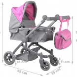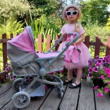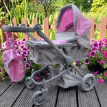 Stijlvolle poppenwagen die kan worden omgebouwd naar een wandelwagen of reiswieg en zo realistisch verzorgingsspel mogelijk maakt. Voorzien van een licht frame, zwenkwielen, een verstelbare duwbeugel en veiligheidsriemen. Inclusief praktische tas voor accessoires.