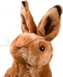 Het pluche konijn vangt de details van een echte haas, inclusief lange oren en schattige snorharen.