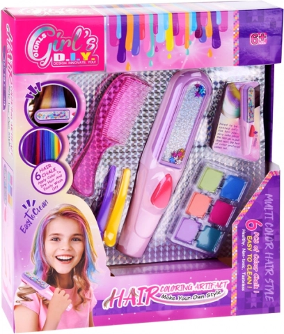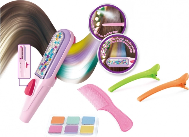 Ontdek de magie van haarkleurverandering met deze set haarkrijt die elke meid blij zal maken. De set bevat alle benodigde gereedschappen voor het creëren van nieuwe, kleurrijke kapsels. De set bevat zes krijtkleuren: paars, oranje, groen, blauw, roze en turquoise, samen met een applicator en kam voor het aanbrengen van de kleur.