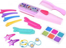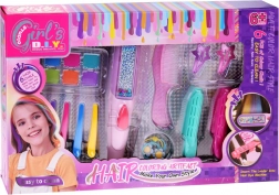 Ontdek de magie van kleur met 6 haarkrijtjes: paars, oranje, groen, zeeblauw, roze en blauw. De set bevat ook clipjes, kammen en rollers die het stylen vergemakkelijken. Haarkrijt is veilig, de kleuren zijn gemakkelijk uit te wassen en komen vooral goed uit op licht haar.