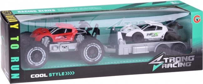 De set bevat een terreinvoertuig, een sportauto met aanhanger – een complete oplossing voor verschillende speelscenario's.