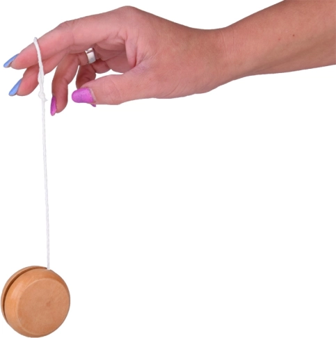 Ga terug naar de basis met tijdloos speelgoed dat nooit verveelt. Het houten jojo met gladde afwerking ligt uitstekend in de hand, draait soepel en dankzij het lange koord leer je zelfs moeilijkere trucs eenvoudig. Steek je vinger door de lus, wind het koord correct op, laat het jojo zakken en geef op het juiste moment een lichte ruk – en het plezier kan beginnen.