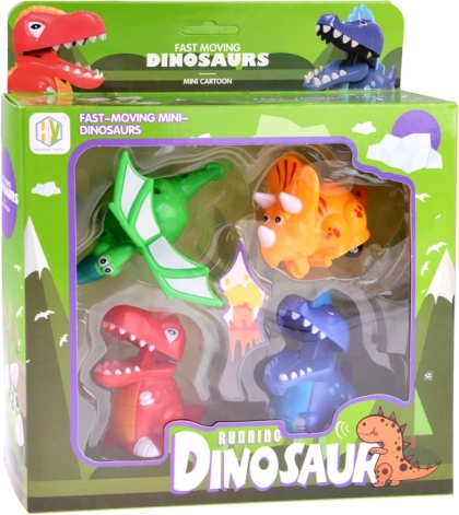 Een schattige set van vier rijdende dinosaurussen die elke kleine dinofan blij maakt. De figuren van hoogwaardige kunststof rijden vanzelf vooruit wanneer je op het juiste element drukt. In de doos vind je een rode T‑Rex, groene pterodactylus, oranje triceratops en blauwe spinosaurus. Prachtige kleuren, een veilig ontwerp en een leuk mechanisch aandrijfsysteem voor uren creatief spel.