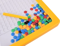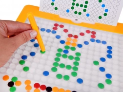 Werken met de pinnetjes en de magnetische pen traint grijpkracht, coördinatie en geduld. Ideaal leermiddel voor kleuters en jongere schoolkinderen.