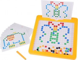 De educatieve magnetische mozaïek YOKOMISIADA combineert spel en leren in één. Kinderen plaatsen kleurrijke pinnetjes in het raster volgens voorbeeldkaarten (auto, vlinder, bloem en meer) of maken hun eigen afbeeldingen. Het magnetische oppervlak vergemakkelijkt de hantering en houdt de elementen op hun plek, zodat het spelen soepel verloopt en zonder onnodige rommel.