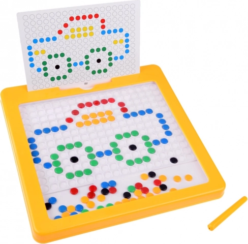 Ontdek een speelse manier van leren met de magnetische mozaïek YOKOMISIADA – een creatieve bordset met kleurrijke pinnetjes en voorbeeldkaarten. Kinderen oefenen hun fijne motoriek, kleurherkenning, logica en geduld terwijl ze afbeeldingen in het raster leggen. Dankzij de compacte afmetingen en het makkelijk stapelen van de pinnetjes is het ideaal voor kleuterschool, school en thuis.