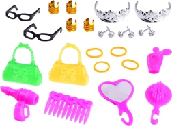 Deze veelzijdige set met kleding en accessoires is ontworpen voor poppen van het type BARBIE, ANLILY en andere poppen met een lengte van ongeveer 30 cm. Dankzij de bonte prints van de jurkjes, de vele schoenen en de stijlvolle accessoires maken kinderen eenvoudig nieuwe outfitcombinaties en ontwikkelen ze hun fantasie en fijne motoriek.