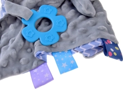 De zachte stof met nopjes en labeltjes nodigt uit tot knuffelen en tactiele ontdekking en ondersteunt de zintuiglijke ontwikkeling van de baby.