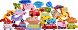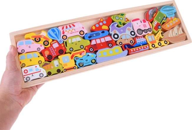 - Houten educatieve puzzel met voertuigen en letters