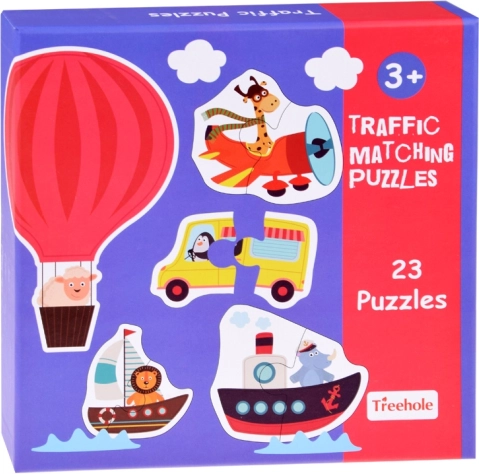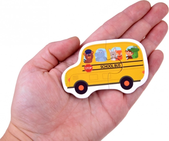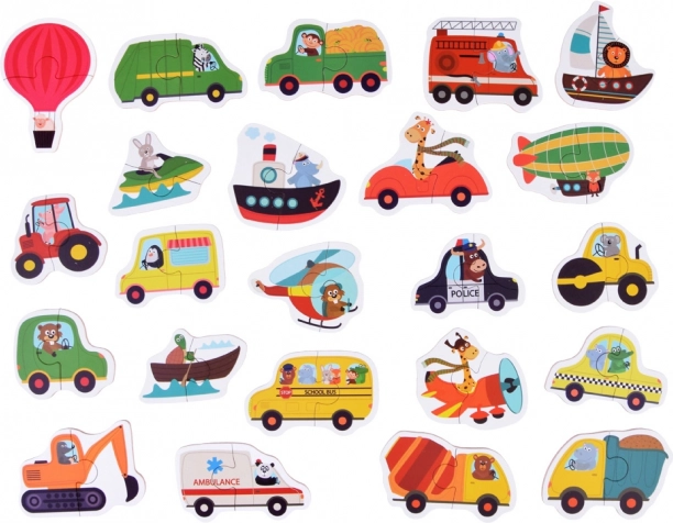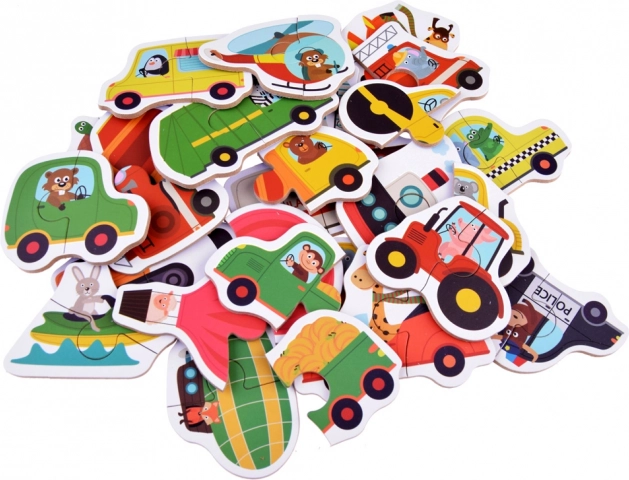 Kinderpuzzel Dierenvervoer – 23 educatieve tweedelige puzzels met voertuigen