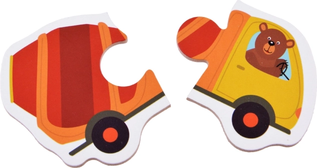 Deze creatieve set bevat 23 eenvoudige tweedelige puzzels met vrolijke illustraties uit de wereld van vervoer – van auto’s en bouwmachines via politie en brandweer tot vliegtuigen, boten en een ballon. Ideale eerste puzzels voor kleine ontdekkers die hun oog-handcoördinatie en het herkennen van vormen, kleuren en soorten voertuigen oefenen.