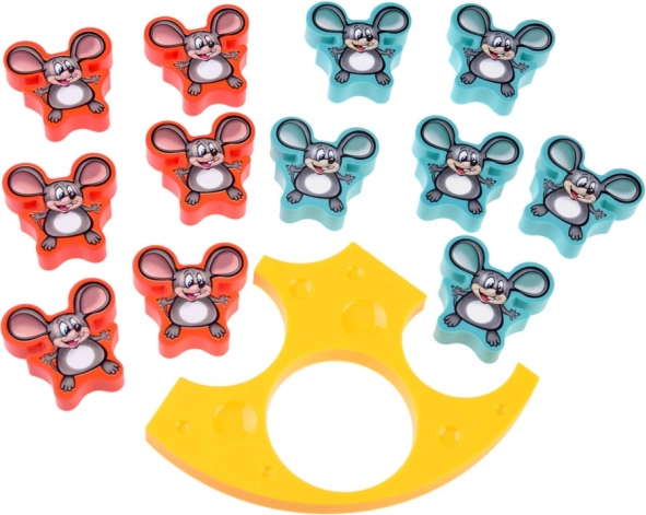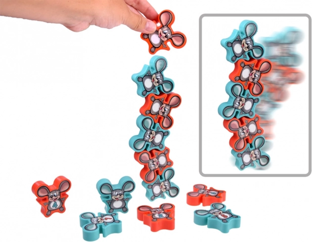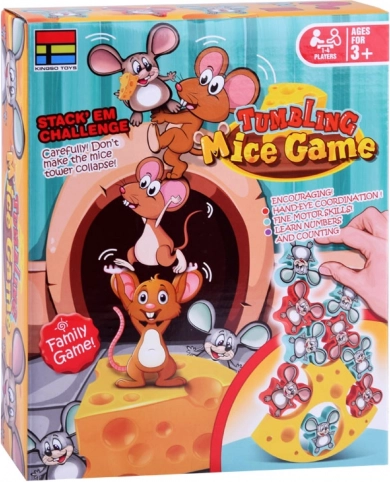 Spelers stapelen om de beurt de figuurtjes op elkaar. Wie als eerste al zijn muisjes neerlegt, wint. Spannend vermaak voor het hele gezin.