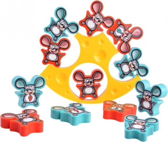 Leg de muisjes op de kaasbasis zonder dat de constructie omvalt. Geweldige training voor concentratie, fijne motoriek en geduld.