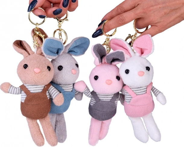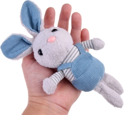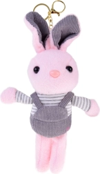 Verwen jezelf of kinderen met een schattige accessoire – een pluchen konijntje als sleutelhanger in een tuinbroek. Het is zacht, aangenaam om aan te raken en dankzij de metalen karabijnhaak eenvoudig te bevestigen aan sleutels, rugzak of etui. Zacht materiaal, stijlvol gestreept T‑shirt en tuinbroek en een praktische sleutelhanger maken er zowel een ideaal klein cadeautje als dagelijkse metgezel van.