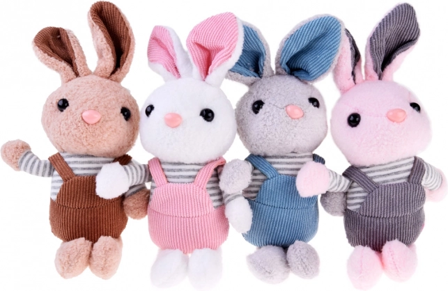 Het gestreepte T‑shirt en de tuinbroek geven het konijntje een unieke look en flair.