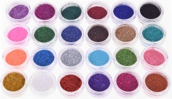 De kit bevat alles wat je nodig hebt om oogverblindende glittertatoeages te maken, met 24 verschillende glitterkleuren.