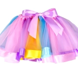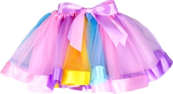 Op zoek naar de perfecte rok voor kleine danseressen? Onze kleurrijke tutu-rok met regenboogverloop en roze strik is precies het juiste stuk.