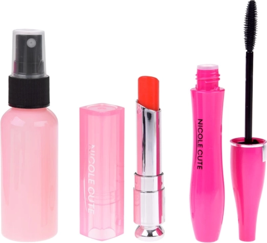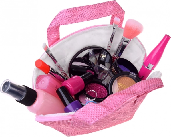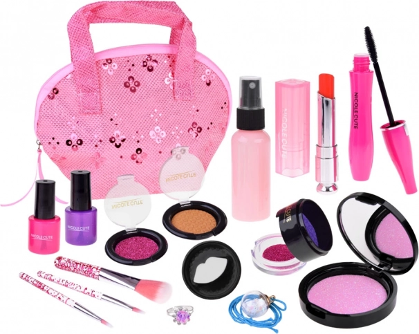 Alle producten zijn verpakt in een roze cosmetica-etui, dat niet alleen praktisch is voor het opbergen, maar ook visueel aantrekkelijk voor kinderen.
