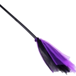 Lichte bezem met kunststof handvat en zwart‑paarse afwerking, ideaal als rekwisiet voor carnaval en Halloweenkostuums.
