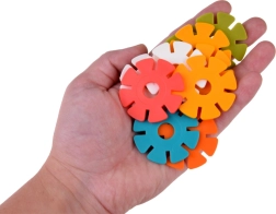 Bouwset Sterren is ontworpen om de zintuigen van kinderen te stimuleren: het zicht met behulp van opvallende kleuren en de tast via de originele vormen. Met deze bouwset kunnen kinderen ruimtelijke bouwwerken, huizen, bruggen, bloemen of dieren bouwen. Ze kunnen ook letters van het alfabet of cijfers maken om te leren.