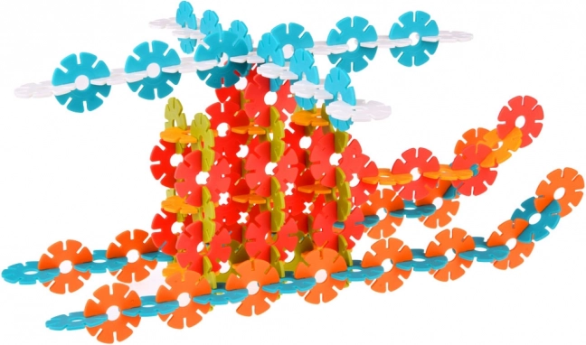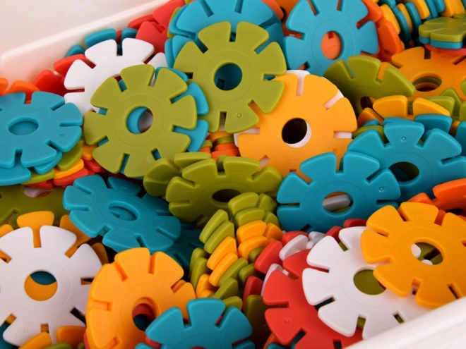De set bevat 506 delen in 6 verschillende kleuren: wit, geel, oranje, rood, groen, blauw. De blokken zijn opgeborgen in een plastic doos met deksel, die een handvat heeft voor gemakkelijk transport. Na het spelen kan een kind de bouwset eenvoudig opruimen.