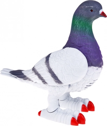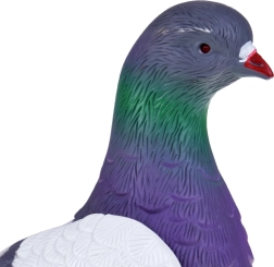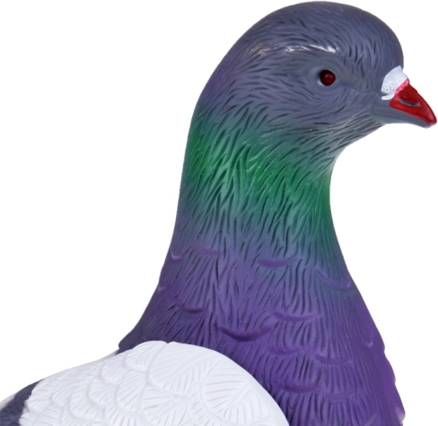 Het speeltje bootst nauwkeurig het uiterlijk van een echte duif na, inclusief de kleurrijke overgang op het hoofd en gedetailleerde elementen zoals klauwen en veren.
