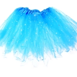 Blauwe tule rok versierd met sterretjes en LED-verlichting voor een magisch uiterlijk. Een elastische tailleband zorgt voor comfortabel dragen.