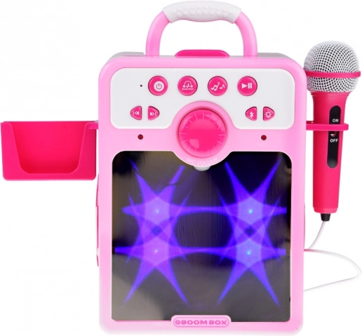 Ontdek de roze kinderboombox met microfoon, ideaal voor karaoke en muzikaal plezier. Meer dan 80 voorgeprogrammeerde liedjes, aansluiting via USB of Bluetooth en geweldige lichteffecten.