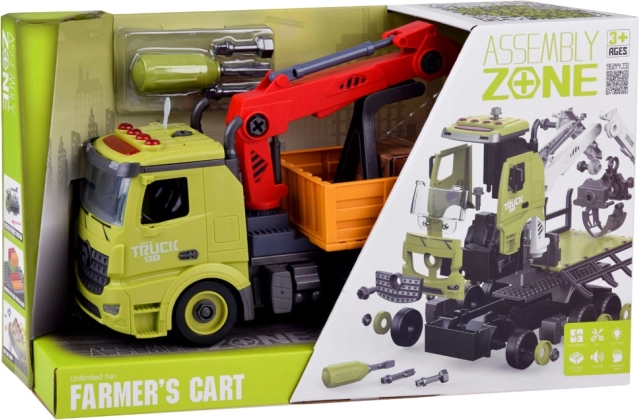 interactieve bouwset: truck met uitklapbare oplegger, kraan en vorkheftruck