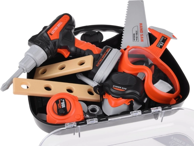 De set bevat gereedschap dat eruitziet als echt, maar veilig is voor kinderen. Zo kunnen ze reparaties naspelen en technisch inzicht ontwikkelen.