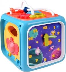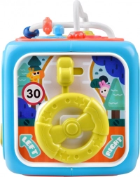 Kleurige interactieve kubus voor kinderen vanaf 18 maanden die een pianootje, kralendoolhof, vormensorter, draaibare wieltjes, leren klokkijken en een stuur in één speelgoed combineert. Stimuleert fijne motoriek, oog-handcoördinatie, herkennen van vormen en kleuren en zintuiglijke ontwikkeling. Het compacte formaat is ideaal voor onderweg, vrolijke melodieën en geluiden zorgen lang voor plezier.