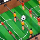 Metalen stangen met comfortabele grepen, overzichtelijke opstelling van de spelers en eenvoudige bediening voor nauwkeurige passes en schoten op doel.