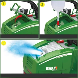 De grootste attractie is de realistische rookfunctie – vul water bij met het meegeleverde flesje, activeer de rook op de controller en uit de uitlaat komt een fijne, verlichte stoom. De beweegbare maaivoorzet heeft een roterende invoerrol en kan worden geheven en neergelaten; de losarm draait 360°. De achteras is aangedreven en biedt toespoorafstelling. Brede rubberen wielen zorgen voor stabiliteit en grip.