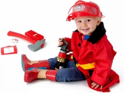 Bijltje, breekijzer, walkietalkie, badge en brandweerpas – de kleine redder heeft alles wat nodig is voor realistisch spel.