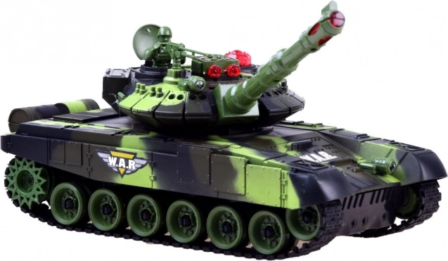 De tank is uitgerust met LED-verlichting (front-LED’s, effectverlichting in de toren) en geluidseffecten (motor, kanonschot, mitrailleur). Na drie treffers wordt de tegenstander ongeveer 30 seconden uitgeschakeld en kan het duel opnieuw beginnen. Zachte rubberen rupsbanden zorgen voor goede grip en soepele beweging op verschillende ondergronden.