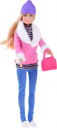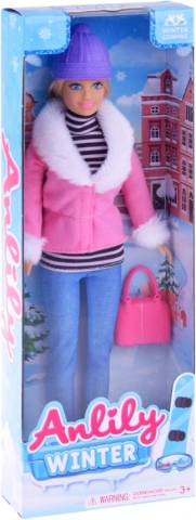 Stijlvolle ANLILY-pop in een winteroutfit die elke kleine modeliefhebber zal verrassen. Ze heeft lang blond haar om te kammen en te stylen, draagt een roze winterjasje met witte bontafwerking, een paarse muts, blauwe leggings en wordt aangevuld met een roze handtas. Dankzij de bewegende ledematen is ze ideaal voor creatief spelen en het vertellen van verhalen.