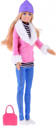 Dankzij de bewegende ledematen kun je de pop gemakkelijk laten zitten, staan of stijlvol neerzetten. De roze handtas en sportieve sneakers geven de set extra flair, zodat het spel met een modeshow of winterse wandeling meteen kan beginnen.