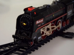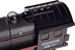 Dit gedetailleerde model van een stoomlocomotief bootst een echte treinset natuurgetrouw na: tijdens het rijden brandt de voorste LED-lamp, uit de schoorsteen komt stoom en je hoort gong, fluitsignaal en het klapperen van de wielen. De soepele start vooruit en achteruit bedien je met knoppen op het dak van de locomotief. Giet een beetje water in de daarvoor bestemde opening en geniet van het indrukwekkende rookeffect.