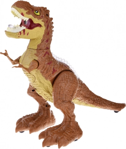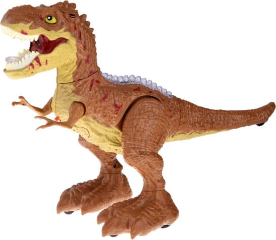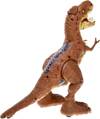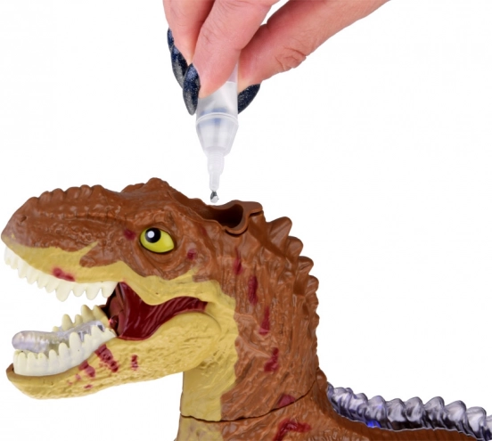 Na het bijvullen van water in het reservoir blaast de T‑Rex verlichte stoom uit zijn bek, wat samen met het gebrul een indrukwekkend effect van een echte predator creëert.