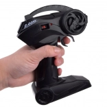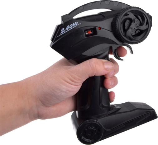 De afstandsbediening werkt op een frequentie van 2,4 GHz, wat zorgt voor een stabiele verbinding en nauwkeurige besturing van de auto.