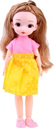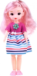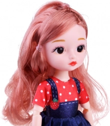 De pop is gekleed in kleurrijke jurken en roze schoenen die gemakkelijk kunnen worden verwijderd. Haar kleine gezicht wordt omlijst door lang, glanzend haar dat kan worden gekamd en verschillende kapsels kan creëren. Door de beweegbare gewrichten kan de pop in verschillende posities worden geplaatst, bijvoorbeeld zittend of met gebogen armen.