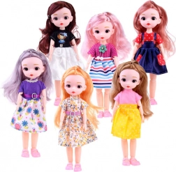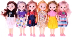 De pop is gekleed in stijlvolle, kleurrijke jurkjes die de fantasie en het spelplezier stimuleren.