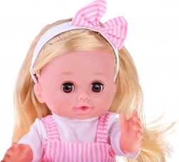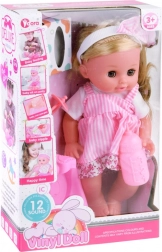 Deze schattige interactieve pop is perfect voor elk kind dat graag moeder wil spelen. Haar lange blonde haren kunnen gekamd en gestyled worden in verschillende kapsels. Grote bruine ogen sluiten zich als de pop ligt, wat extra realisme toevoegt. De pop kan praten, lachen en huilen, waardoor het spel inspirerend en leerzaam is.