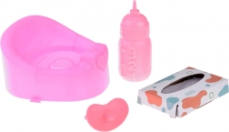 De set bevat een speen en andere accessoires die kinderen helpen om verzorgingsvaardigheden te ontwikkelen. Het speelgoed stimuleert empathie en verantwoordelijkheid bij kinderen door middel van speelse leerervaringen.