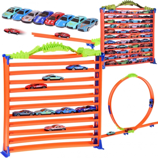 - Na het spelen is de set eenvoudig om te bouwen tot een garage met 11 niveaus voor het handig opbergen van autootjes.