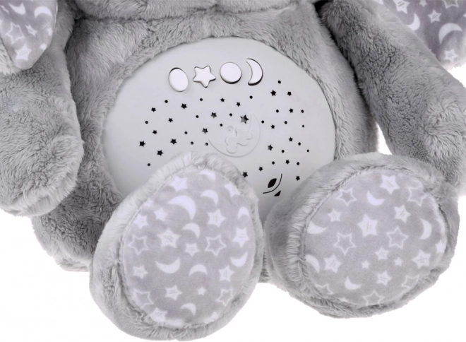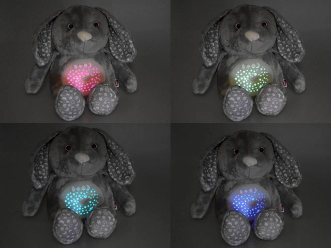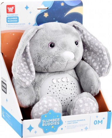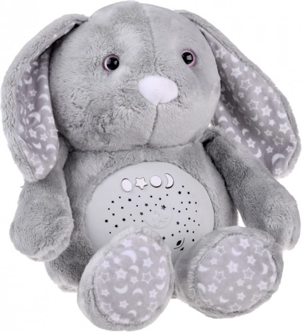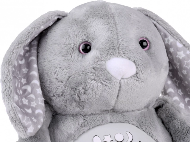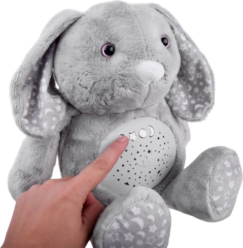Dit zachte, pluchen konijn is gemaakt van fijn materiaal in een gedempte grijze kleur, afgewerkt met sterren- en maanmotieven op de oren en poten. De ogen zijn van plastic, terwijl de neus geborduurd is, wat het speelgoed een schattige uitstraling geeft. Met het interactieve paneel geplaatst in de buik van het konijn, wordt het een onmisbare metgezel voor kinderen die moeite hebben met alleen in slaap vallen.