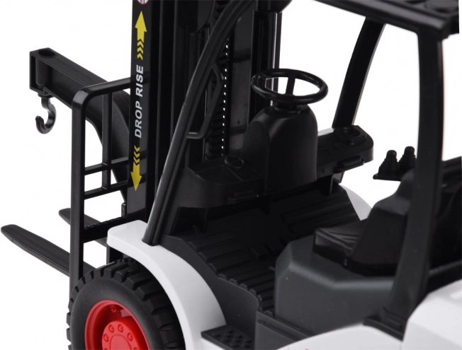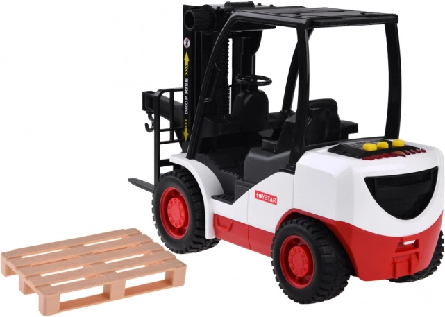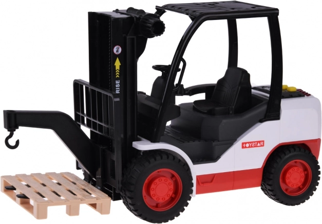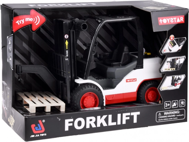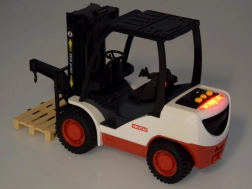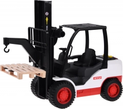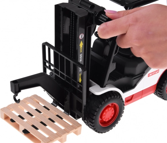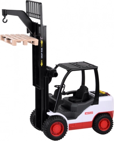 De vorkheftruck is nauwkeurig gemaakt van plastic en ontworpen om eruit te zien als een echte machine. Het heeft vrije aandrijving, die zijn beweging op een vlak oppervlak mogelijk maakt. Het bevat verschillende geluidseffecten, zoals het starten van de motor, werkgeluid en achteruitrijgeluid.
