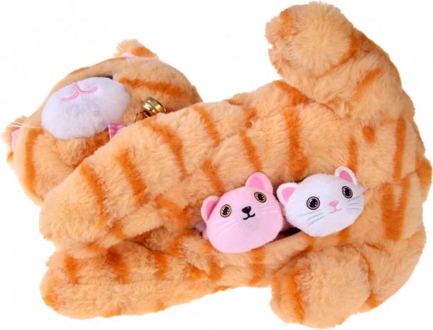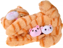 De pluchen mama met twee kittens verstopt in haar buikje stimuleert verzorgend spel en fijne motoriek. Kinderen worden verliefd op de grote ogen en de strik met belletje.