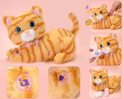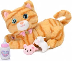 Deze zachte oranje kattenmama met grote blauwe ogen en een afneembare strik met gouden belletje maakt elke kleine dierenliefhebber blij. Dankzij de vele interactieve functies stimuleert ze de verbeeldingskracht, verzorgende vaardigheden en geeft ze een zacht, rustgevend gespin bij het aaien.